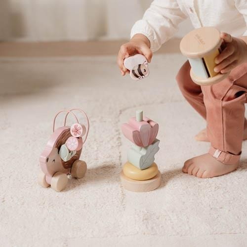 Questo splendido gift box contiene i giocattoli in legno più amati delle collezioni Little Dutch. Tre deliziosi articoli in legno pensati per quei preziosi momenti di gioco e sviluppo. All’interno, troverai un sonaglio a rullo, perfetto per incoraggiare ad afferrare e scuotere per sentire il suono della campanella. C’è un grazioso piccolo impilatore, con blocchi per costruire un personaggio delle collezioni. E anche uno personaggio con le ruote, decorato con piccoli elementi che si muovono lungo la spirale. Tutti e tre i prodotti elegantemente confezionati in un’adorabile scatola regalo.