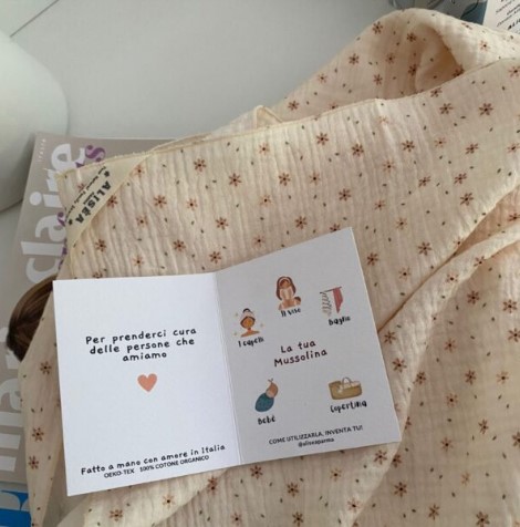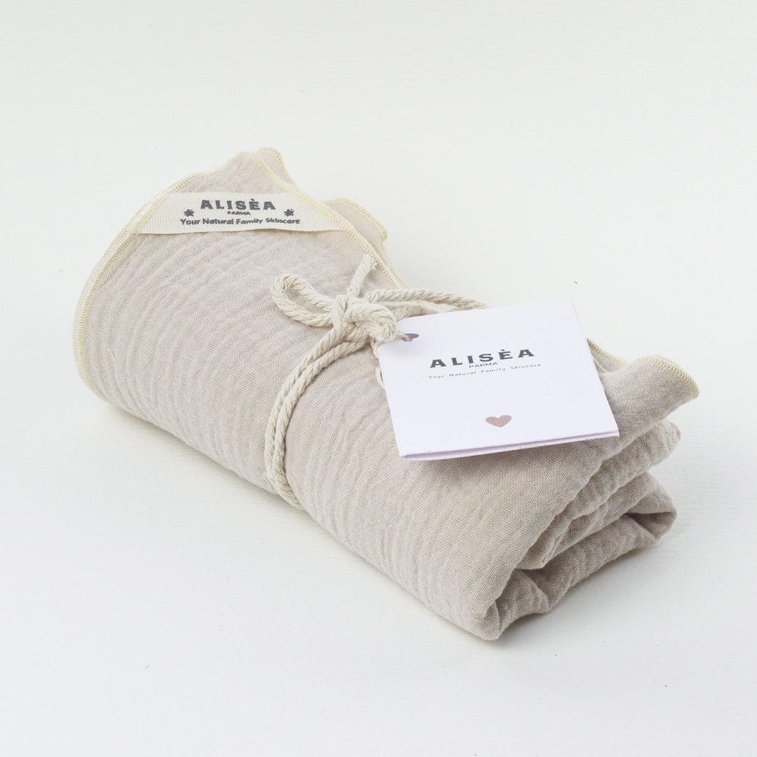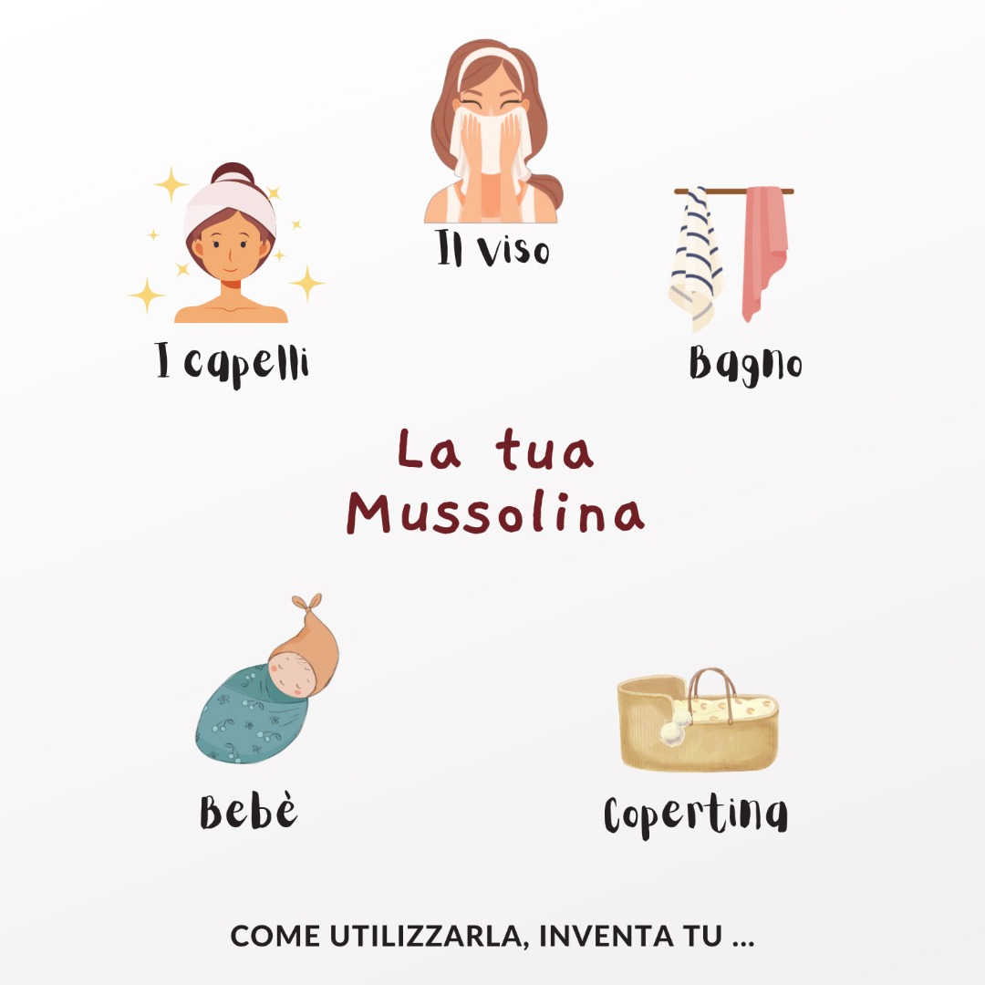 La mussolina è un prodotto multifunzionale e indispensabile per le uscite fuori casa con mamma e papà, oppure durante la vita quotidiana nelle proprie sale da bagno per completare la propria Beauty Routine con un tocco delicato sulla pelle.