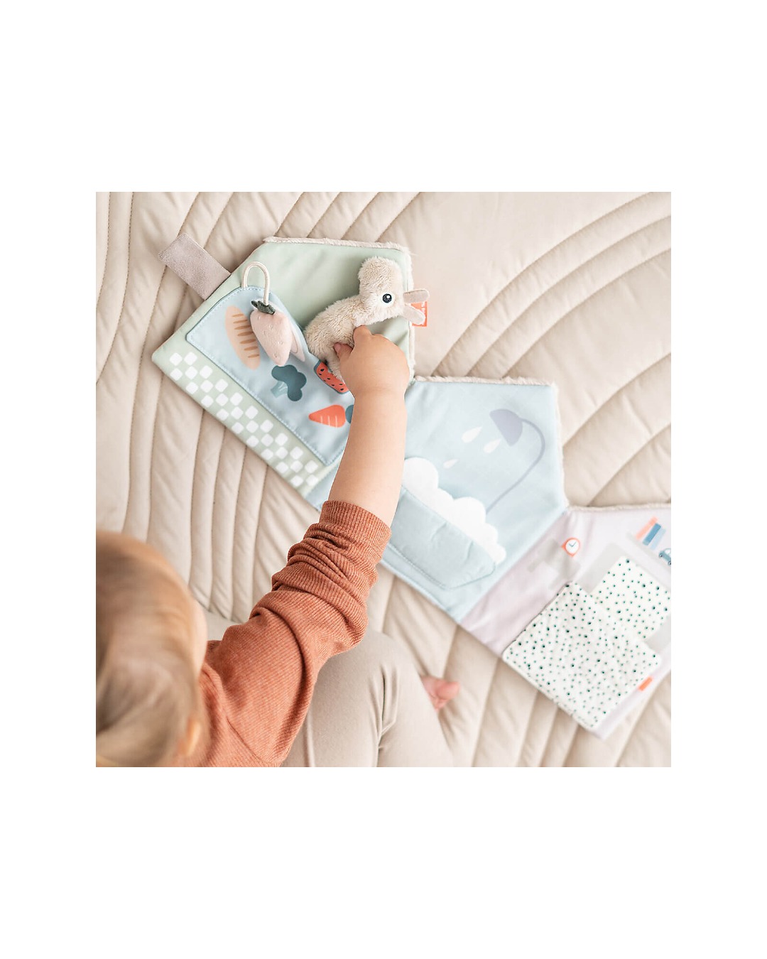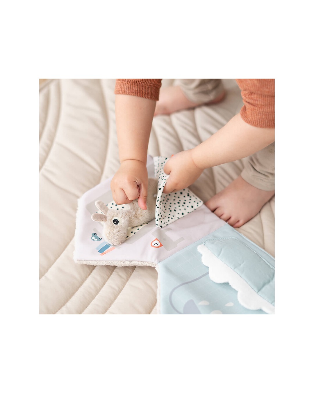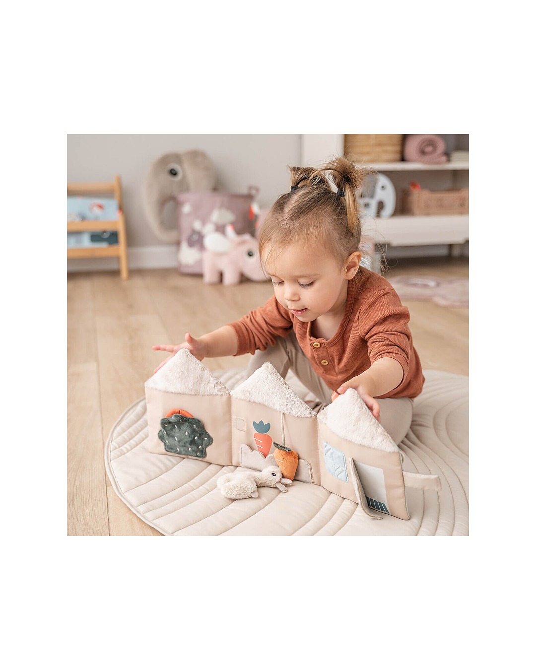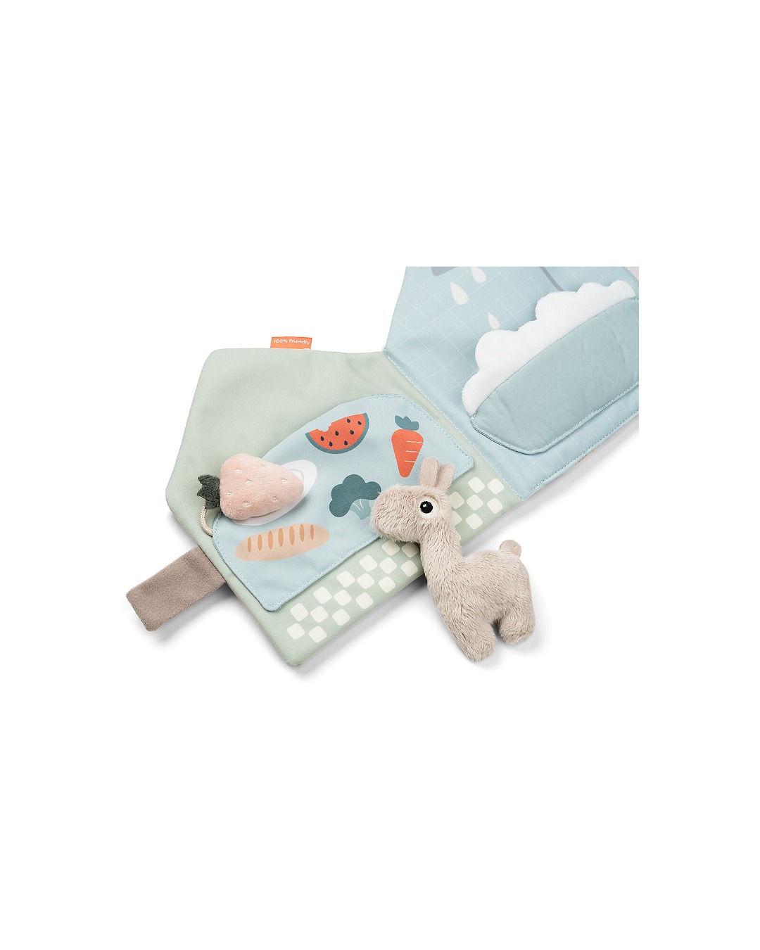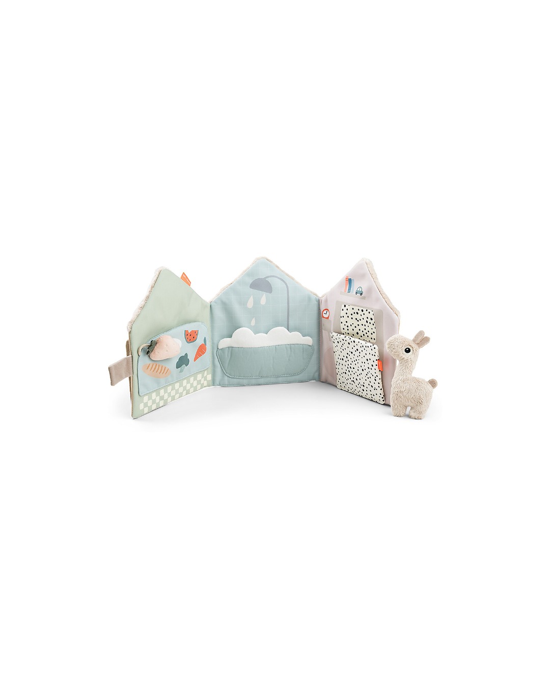 Ecco la casetta di Lalee il Lama! Done by Deer ha creato questo simpatico libro morbido in tessuto che invita il tuo piccolo a usare la sua immaginazione per inventare storie, muovendo il personaggio da una pagina all’altra. Perfetto anche per stimolare e migliorare le abilità linguistiche del piccolo , è anche un ottimo modo per migliorare la coordinazione occhio-mano.
