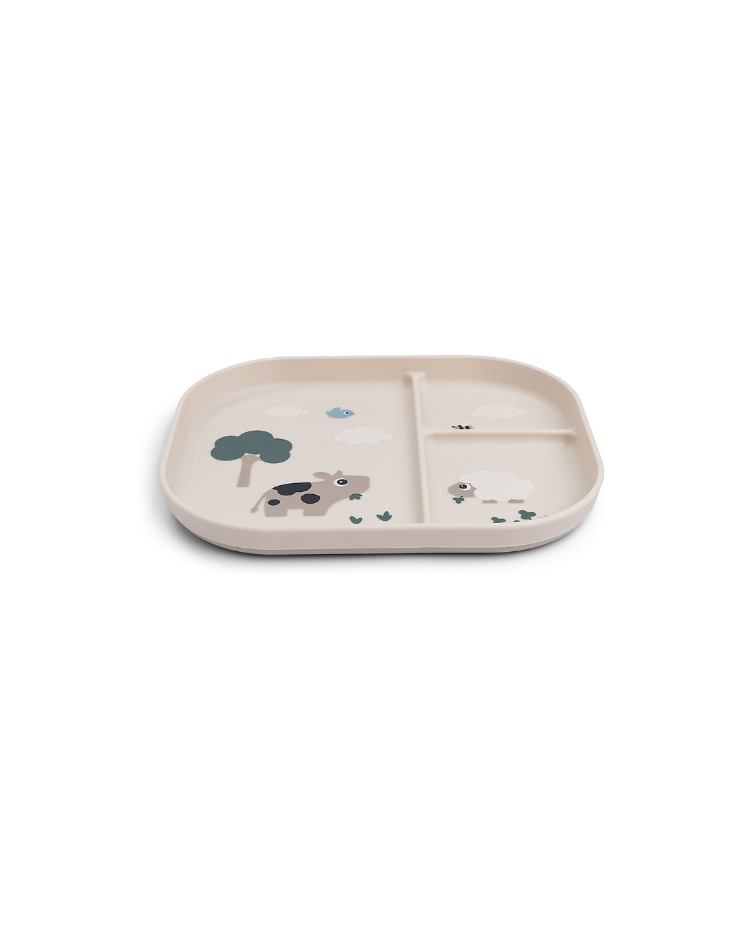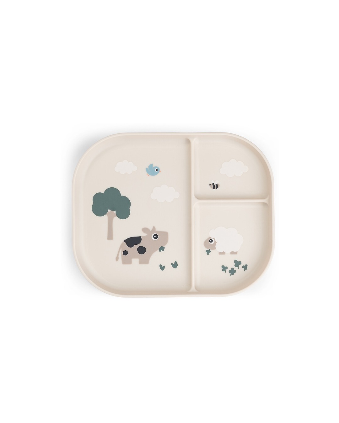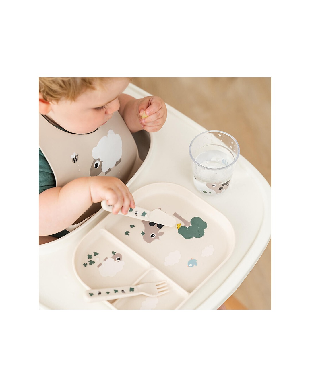 Tutti a tavola con colore e allegria! Il piatto con scomparti di Done by Deer della collezione Tiny Farm, è l’ideale per il tuo bambino che si avvicina alla tavola con curiosità e voglia di autonomia. Dal bordo alto per raccogliere il cibo e una stampa giocosa, ha una pratica base antiscivolo così da rimanere in posizione. La suddivisione del cibo grazie agli scomparti aiuterà il tuo bambino a riflettere su gusti e consistenze diverse. E’ realizzato in PP alimentare, una plastica sicura per il piccolo commensale e riciclabile al termine del suo utilizzo per dare vita a nuovi prodotti per l’uso quotidiano!