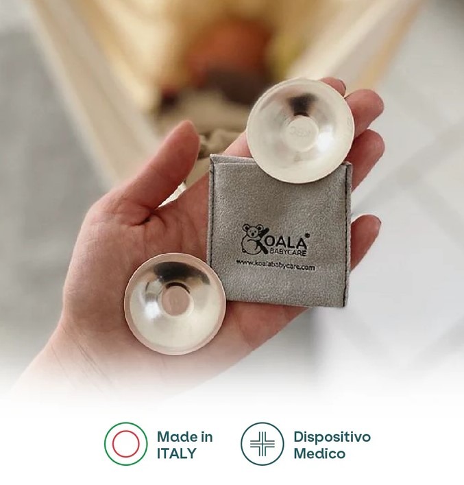 Koala Silver Cups sono i paracapezzoli in argento indispensabili in allattamento: aiutano a prevenire la comparsa delle ragadi al seno o a curarle, se già presenti.