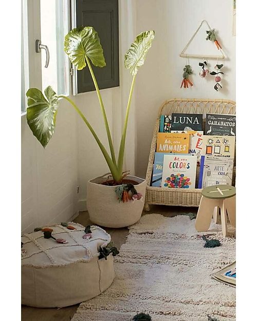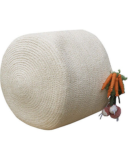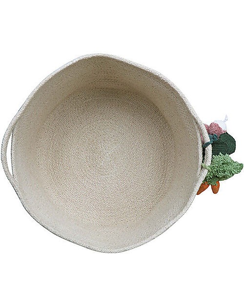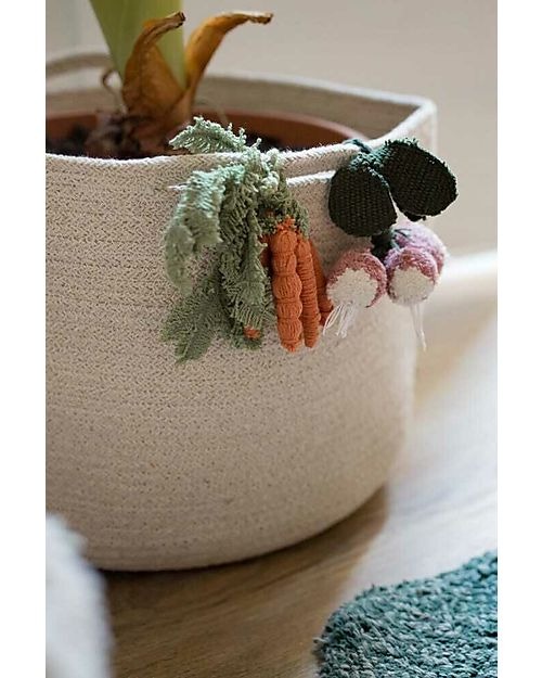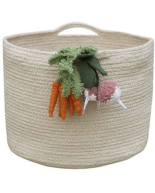 Disegnato da Lorena Canals e realizzato interamente a mano, il Cesto Portaoggetti decorato con due mazzi di verdure, fatto a mano, il cestino ha due manici con cordoni di cotone intrecciati. Mettetelo nella stanza che preferite e sicuramente troverà la sua funzione!