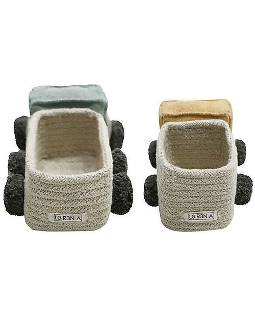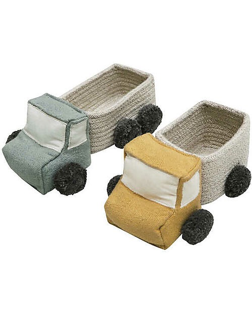 Disegnato da Lorena Canals e realizzato interamente a mano, Set di due mini cestini portaoggetti a forma di camioncini, realizzato con corde di cotone intrecciate, il set è composto da due camion uno più lungo e un più corto, multifunzionale. Mettetelo nella stanza che preferite e sicuramente troverà la sua funzione!