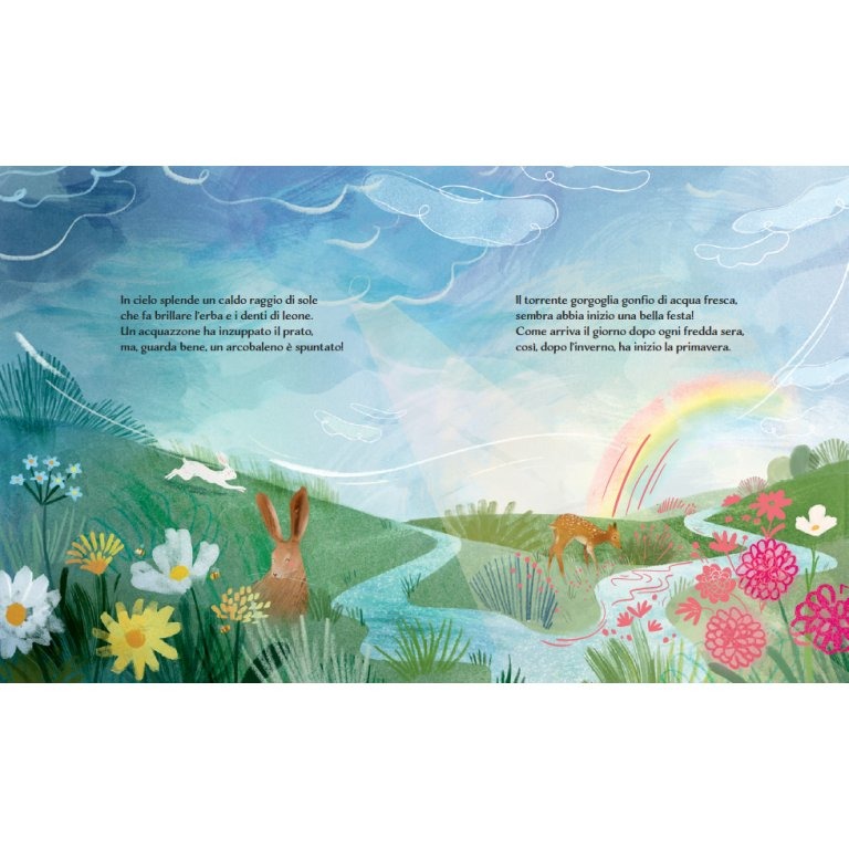 Un libro dalle illustrazioni delicate, arricchito a ogni pagina da dettagli iridescenti, che spiega l’avvicendarsi delle stagioni osservando i cambiamenti della natura.