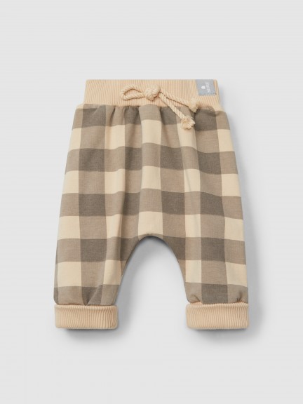 Pantaloni pull-up in jersey di cotone organico cardato con stampa scozzese.